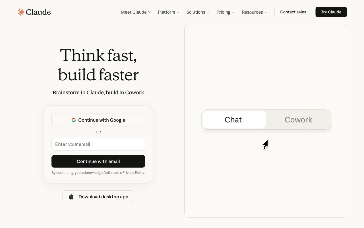 You need to sign up first (unlike ChatGPT and Gemini). Go to claude.ai and register with Google or email.