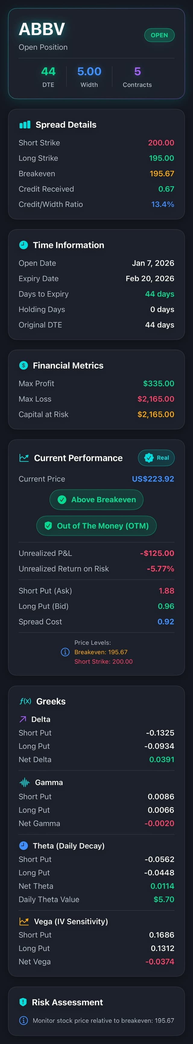 Bull Put Spread 持倉管理,一目瞭然